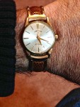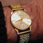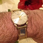 The dial is perfect. The hands and hour markers look like new and the gold filled case is probably at 93%. It even has the original crown. The only negative, which doesn’t bother me, is that it has an inscription on the back. To me, it reminds me that this watch has some history behind it.