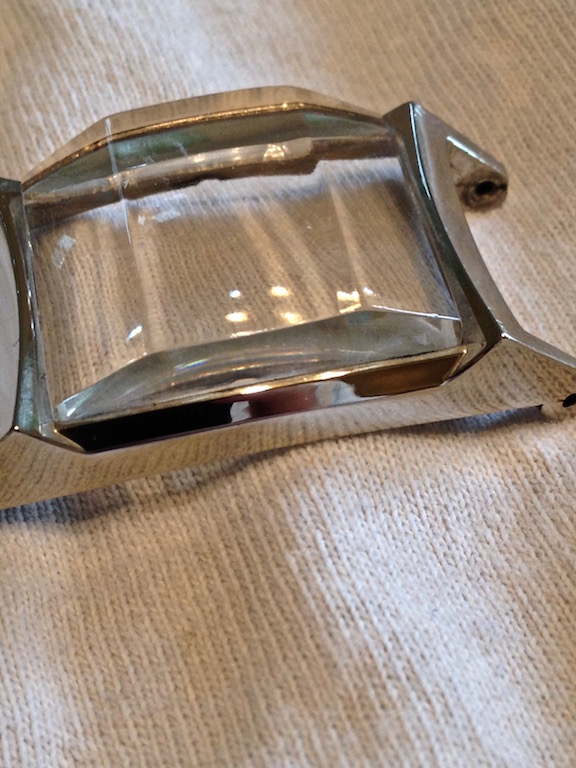 This is a very interesting Elgin. It has a 3 tiered crystal. It is 10K white gold filled and it has some interesting lugs as well.