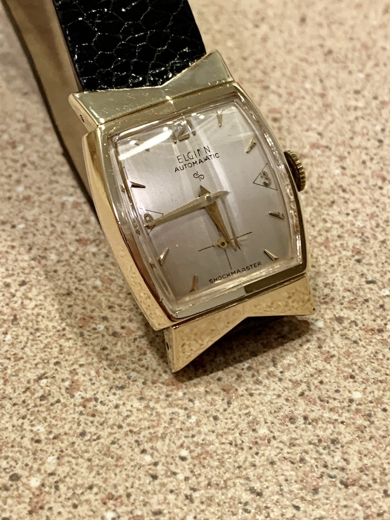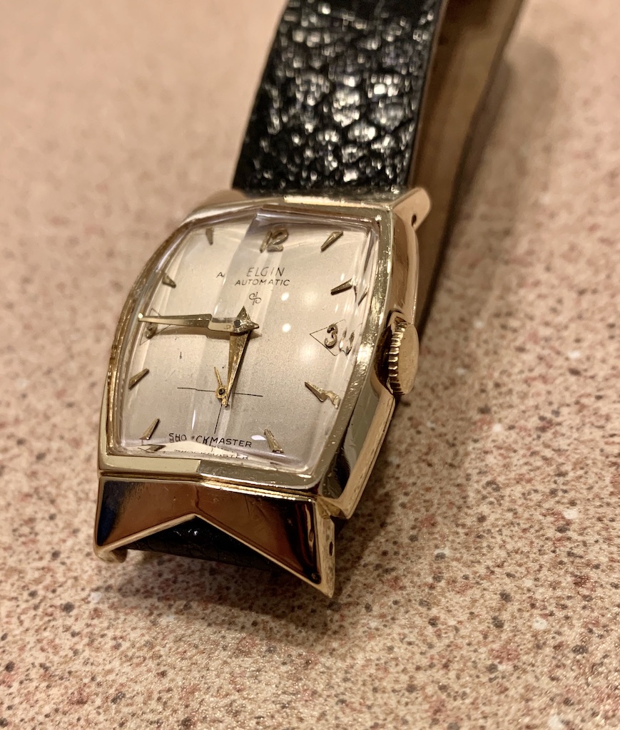I’ve added the Elgin Wheaton to my collection. It is from 1953 or so and is part of the Swiss movement line of watches introduced by Elgin in the same year.
