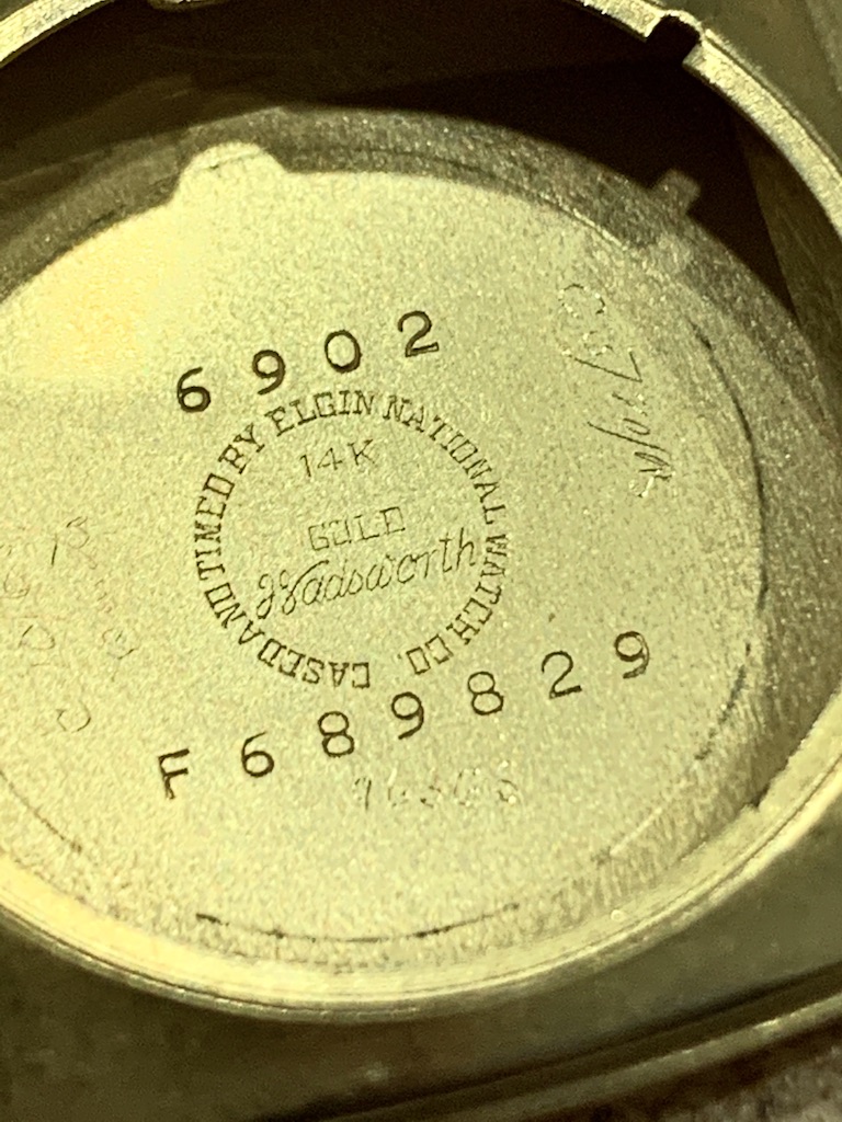 The Wheaton is 14k gold and has 18k applied markers and hands. Its case number is 6902.